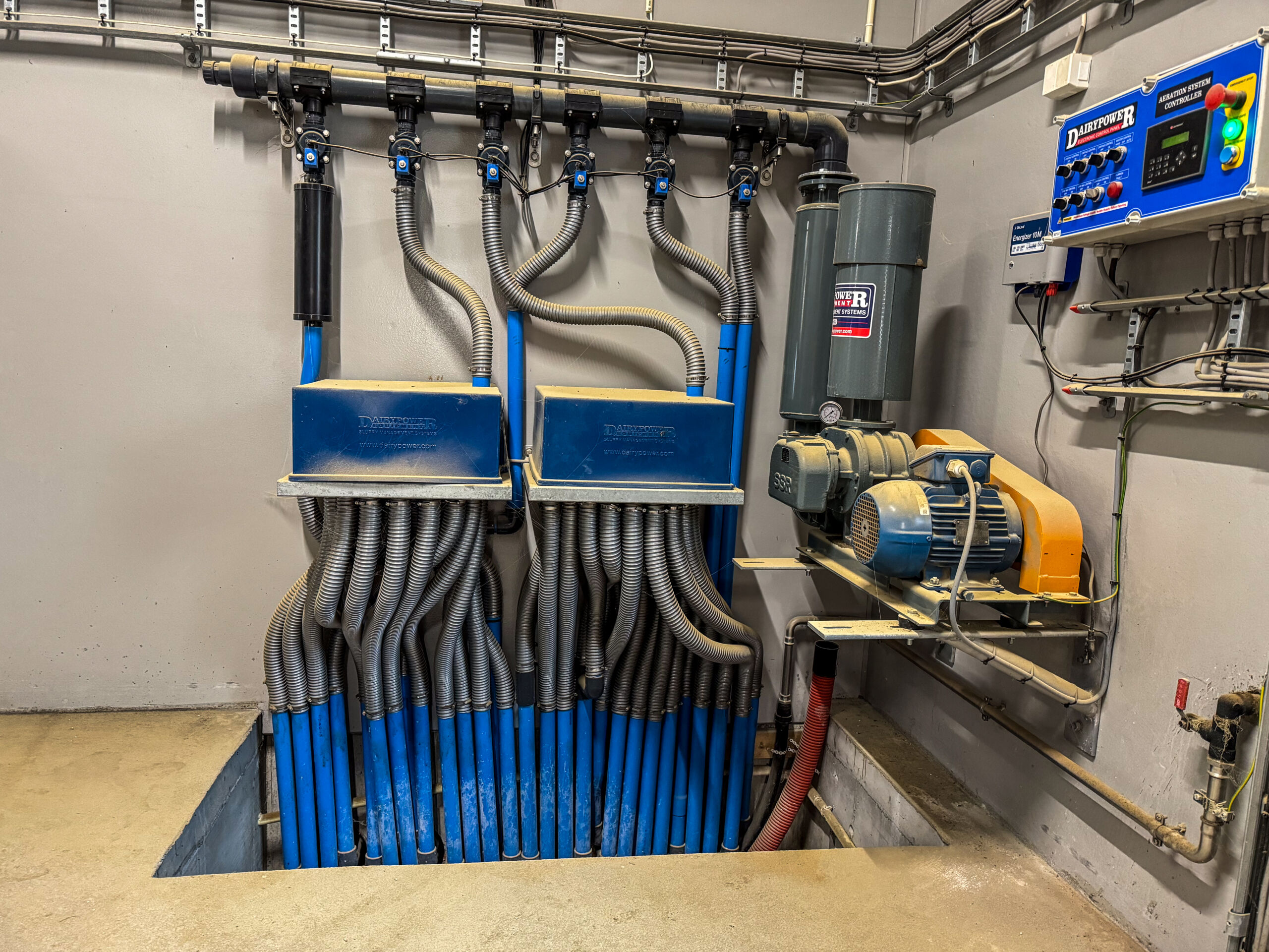 Et luftomrøringsanlegg er en smart løsning som gir trygg og effektiv gjødselhåndtering i landbruket. Systemet tilfører luft til gjødselen gjennom dyser i kjellergulvet, og sikrer at massen blir jevnt omrørt og at det ikke dannes skorper.
