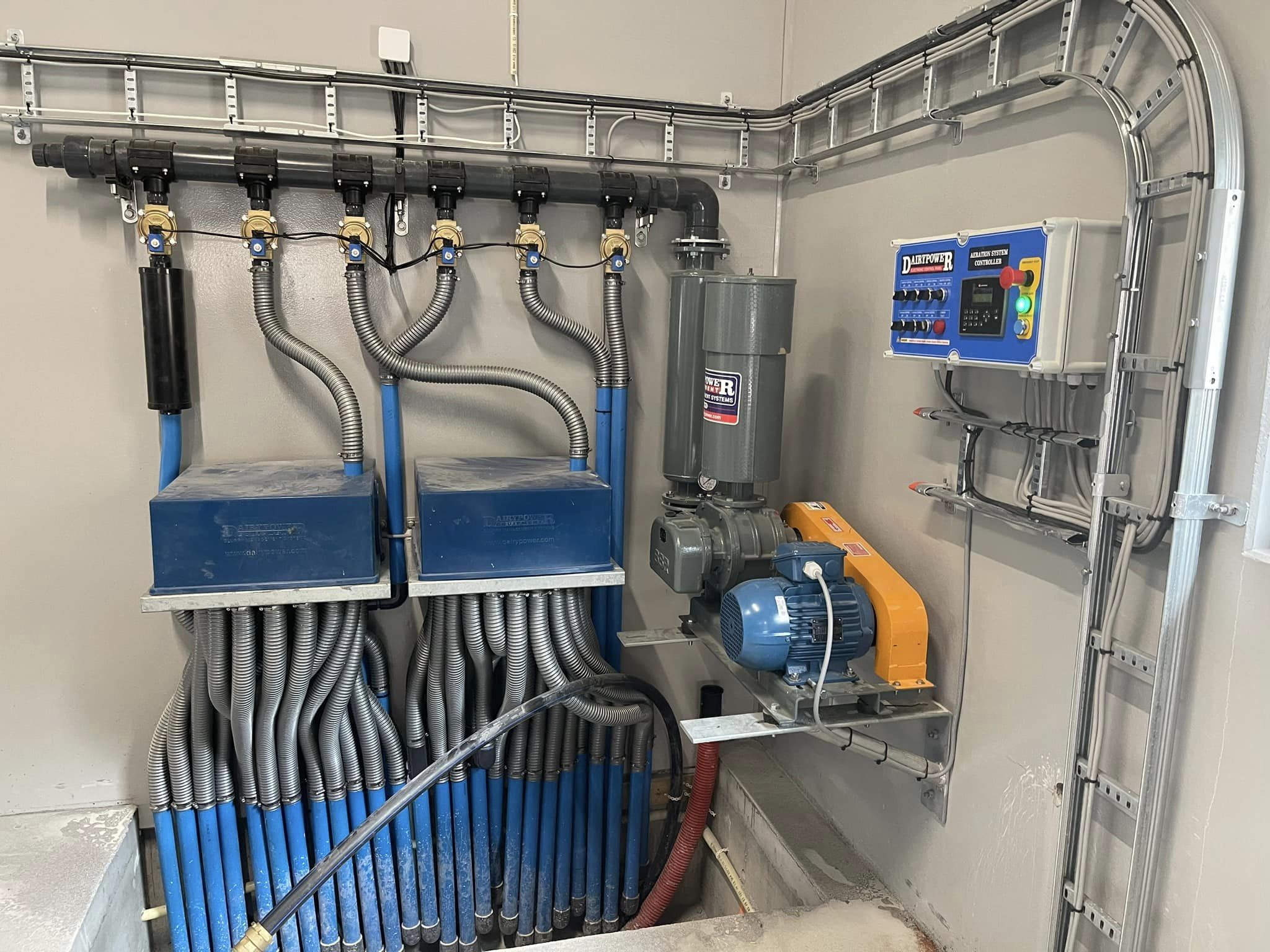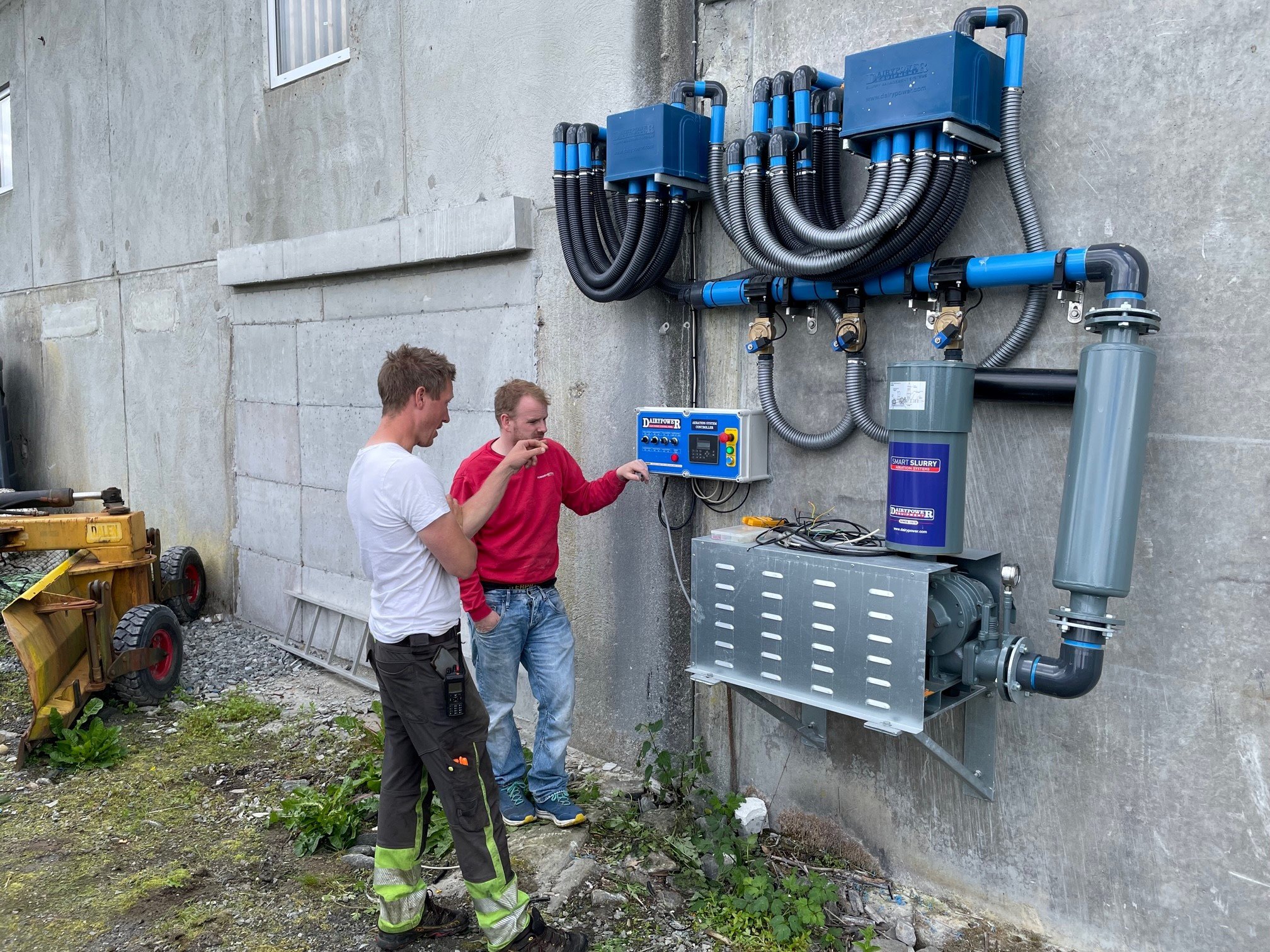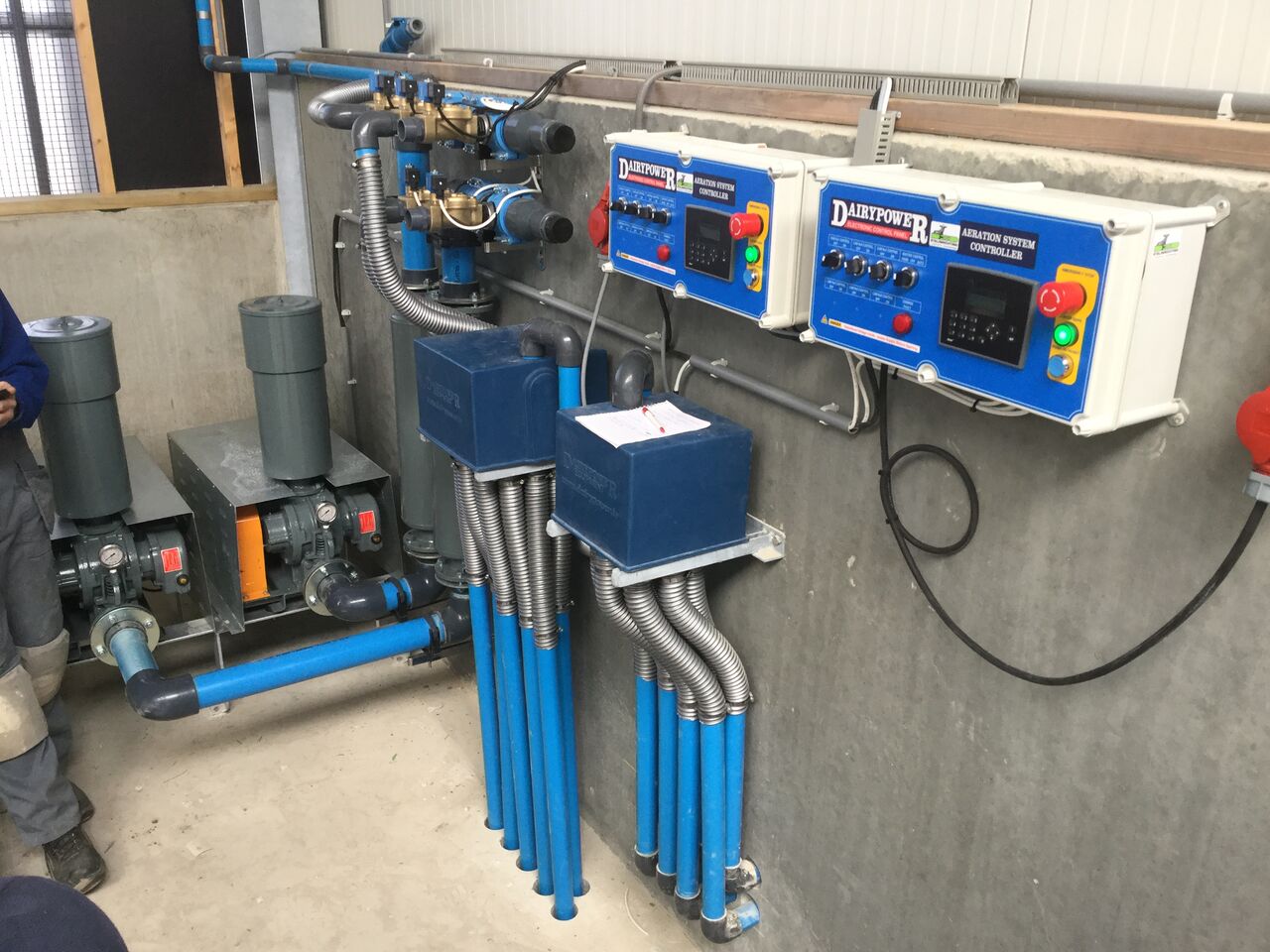 Systemet fungerer ved hjelp av en rotasjonsventil som fordeler luft til alle deler av kjelleren i programmerte intervaller. Dette gir en homogen gjødsel med jevnt innhold av næringsstoffer i alle lass. Anlegget består av en kompressor, styreenhet, rotasjonsventil og rør.