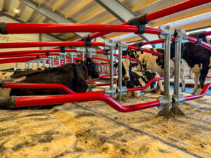 - PE-brystplanken lar deg justere lengden på båsen slik at den passer til størrelsen på kyrne i flokken