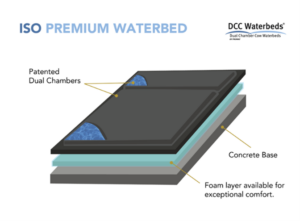 Vi tilbyr også DCC todelt vannmadrass i en Premium-utgave. Denne har 40 mm skumpute under madrassen som bidrar til enda mykere liggeunderlag for kua.